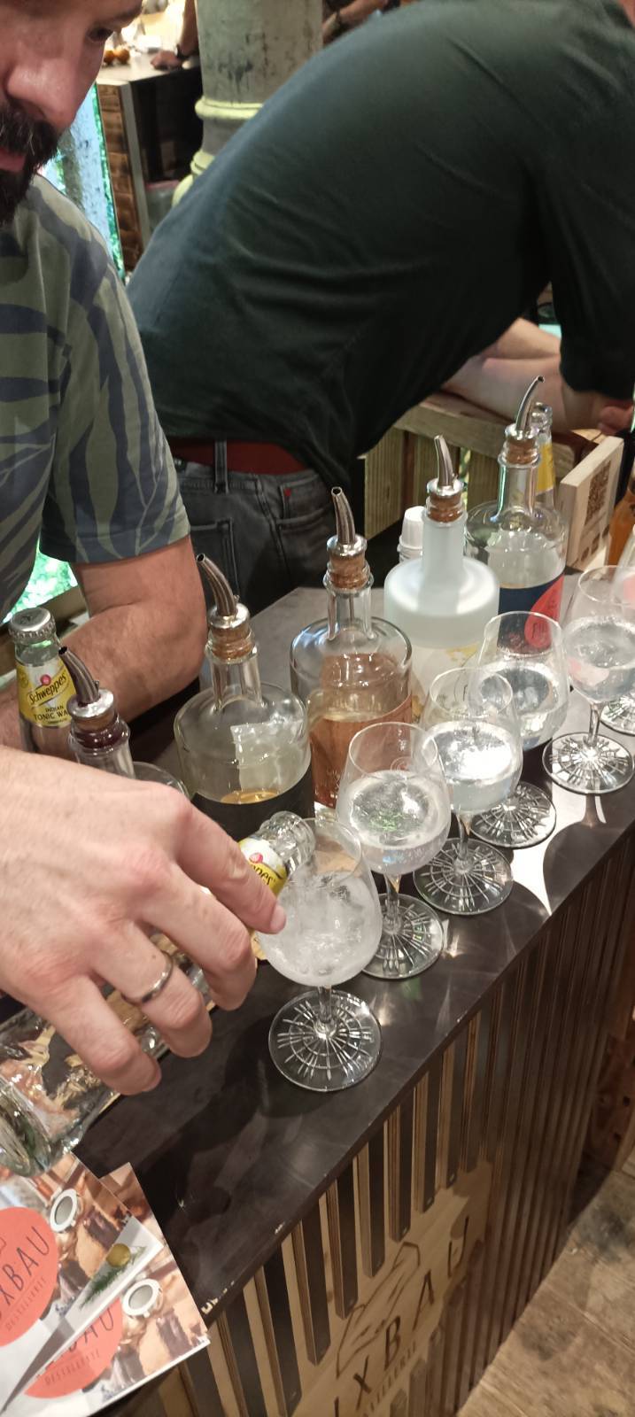 Schöne Location (- das Semperdepot in Wien), gute Stimmung, ein DJ, Snackbar, Stände von Tonic-Herstellern, natürlich viel Gin, und – sehr positiv – gratis Wasser!